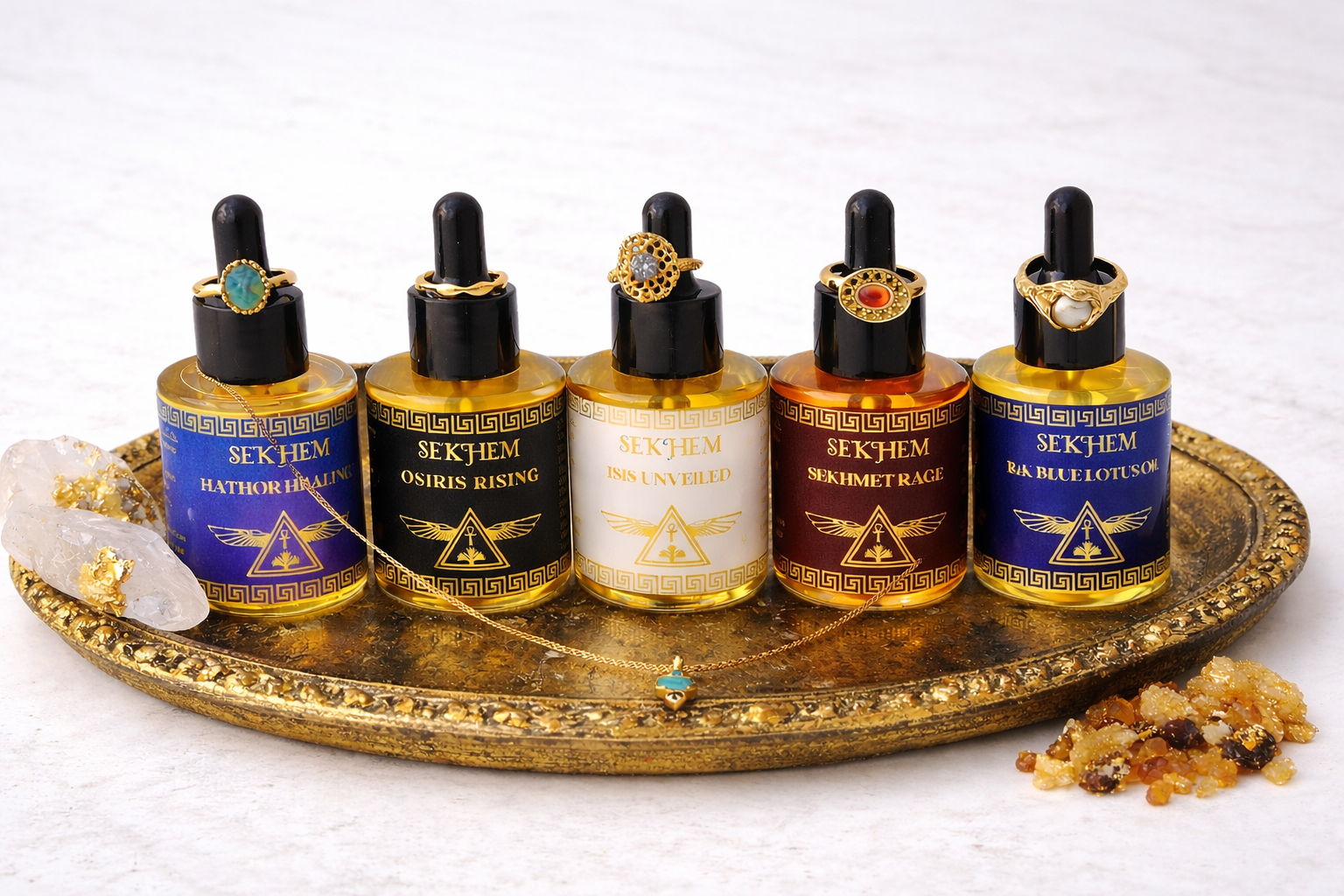 Inspired by her experiences within Egyptian temples and a lifelong exploration of embodiment, Sekhem is an offering designed to bring intention, presence, and transformation into the everyday.